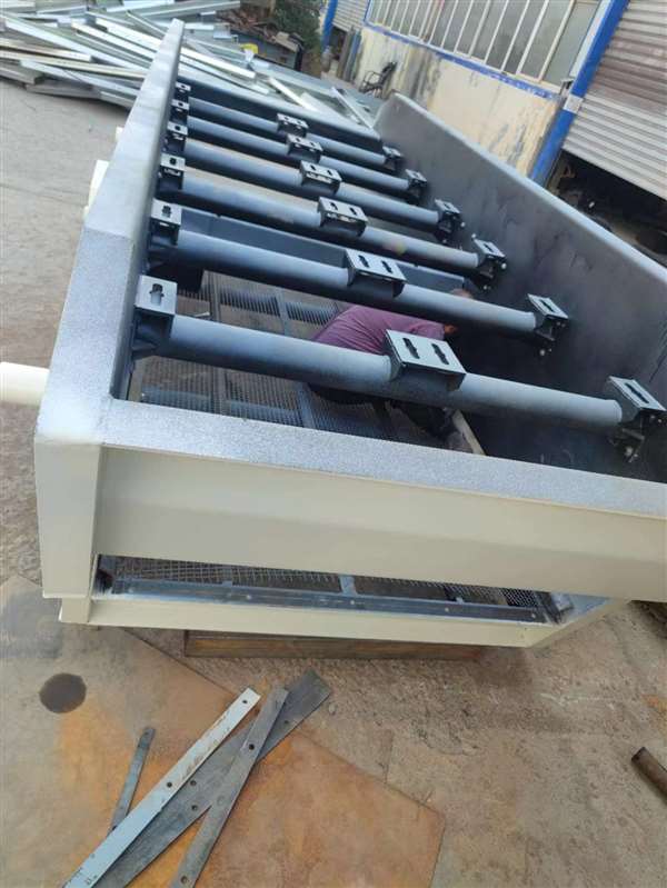 脫水篩是利用振動(dòng)電機(jī)及激振的原理,當(dāng)兩臺(tái)電機(jī)作同步反向旋轉(zhuǎn)時(shí),篩體的運(yùn)動(dòng)軌跡為一直線。物料脫水篩分,在篩面上被拋起,同時(shí)向前運(yùn)動(dòng),從出料口排除,完成對原料的脫水篩分。用于選礦、尾礦、礦山、冶金、等行業(yè)的物料脫水篩分分級。
