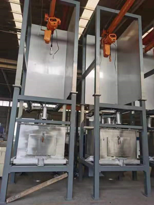 噸包投料站又稱噸袋拆包機,是用來實現(xiàn)袋裝散裝物料的卸料功能,為半自動操作。包裝袋由電動葫蘆提升,包裝袋的袋繩掛在鋼性支架上,手動操作控制葫蘆升降和行走,沿著行走導(dǎo)軌運行到卸料區(qū)上方落下,將包裝袋放置在支架托盤上,使大袋處于卸料位置。然后手動打開卸料閥操作門,人工將包裝袋的卸料口拉入到卸料閥的系口出,按下系帶按鈕,卸料閥束緊氣缸將袋口鎖緊,再手動將大袋的卸料口從卸料位置拉下,罩在卸料口密封箱內(nèi)的出料管外側(cè),按下壓袋機構(gòu)氣動控制開關(guān),使密封法蘭下降,并緊壓在出料管的管端,密封卸料通道,以防卸料過程中粉塵漏,接著,人工解袋,最后,關(guān)上操作門。手動開啟與卸料口密封箱連接的通風(fēng)除塵管道上的閥門。至此,卸料準備過程結(jié)束。
