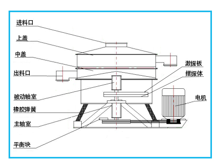 振動(dòng)電機(jī):是設(shè)備的主要?jiǎng)恿碓?,通過振動(dòng)電機(jī)激振力的作用使物料在篩面上運(yùn)動(dòng)。