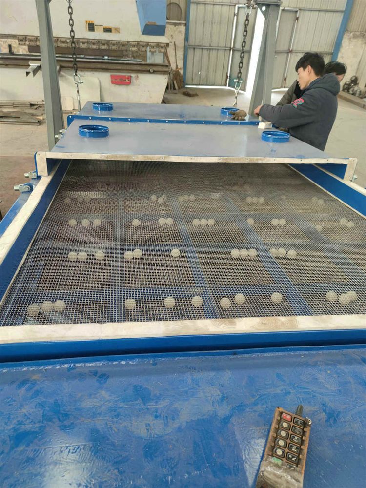 平面回轉(zhuǎn)篩在篩網(wǎng)下方格中的彈跳球通過直接裝機(jī)篩網(wǎng)來去除篩網(wǎng)上的顆粒,使篩網(wǎng)表面保持清潔,小球撞擊篩網(wǎng)產(chǎn)生的振動有助于物料的分離和粘在一起的顆粒分離。
