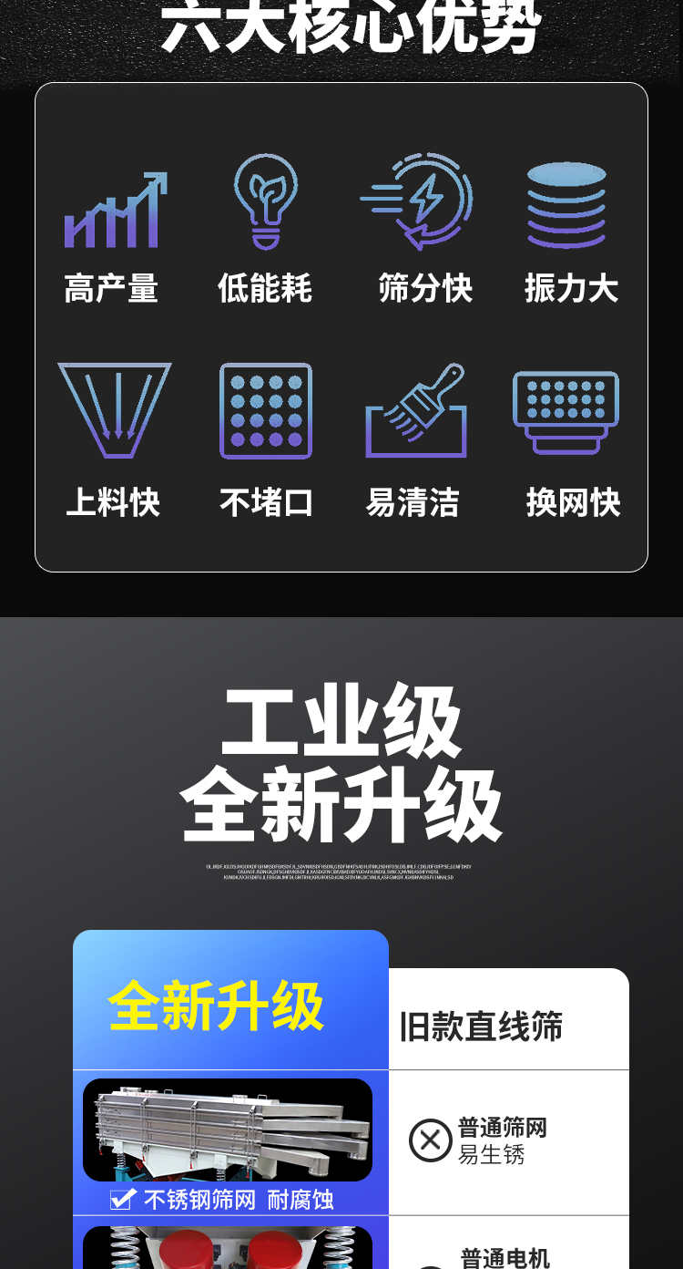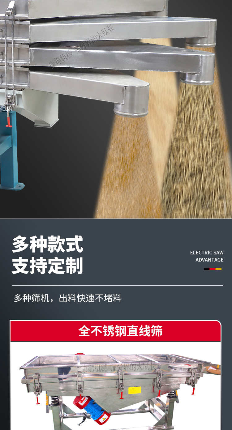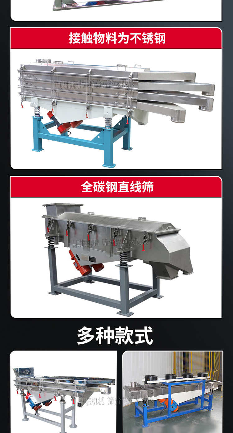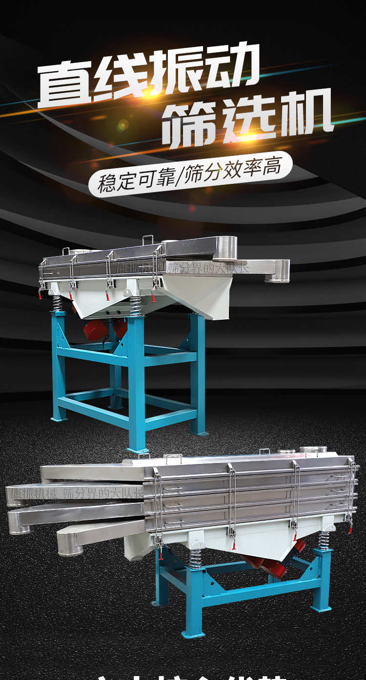 直線振動(dòng)篩(直線篩)穩(wěn)定可靠、消耗少、噪音低、壽命長(zhǎng)、振型穩(wěn)、篩分效率高等優(yōu)點(diǎn)。