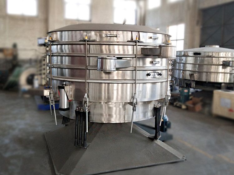 搖擺篩是一種仿人工搖動(dòng)的低頻旋振篩,其原理是:瞬時(shí)運(yùn)動(dòng)為沿徑向的位移和以此位移為軸的圓周運(yùn)動(dòng)的合成(螺旋運(yùn)動(dòng)),即可調(diào)節(jié)偏心距的激振器產(chǎn)生了非線性三維運(yùn)動(dòng),物料也產(chǎn)生同樣的近似手動(dòng)作業(yè)的運(yùn)動(dòng),從而達(dá)到篩分之目的,再配合篩分附件可獲得更加理想的篩分效果,適合于圓形狀、圓柱狀、片狀、乃至 于規(guī)則形狀易堵網(wǎng)且需要精細(xì)篩分的物料,是為了滿足大產(chǎn)量、高密度篩分用戶而設(shè)計(jì)的一種篩分設(shè)備,與一般圓形篩相比,它的篩分精度、效率、產(chǎn)量、篩網(wǎng)壽命能提高5-10倍,符合所有精細(xì)與超細(xì)范圍的粉末與微粒狀物料,特別適合難以處理的物料。還可單層或多層篩分,一次可篩分至6個(gè)粒度。