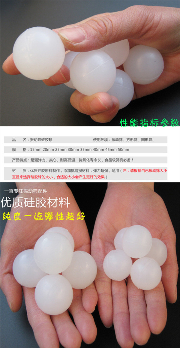 振動篩彈跳球是振動篩不可缺少的部分,它是在振動篩工作的時(shí)候受沖孔板的作用力不停地上下跳動,往復(fù)地敲擊篩網(wǎng),從而實(shí)現(xiàn)清理篩網(wǎng)提高透網(wǎng)率的目的。