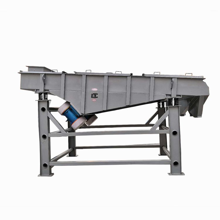 直線(xiàn)振動(dòng)篩利用振動(dòng)電機(jī)激振作為振動(dòng)源,使物料在篩網(wǎng)上被拋起,同時(shí)向前作直線(xiàn)運(yùn)動(dòng),物料從給料機(jī)均勻地進(jìn)入篩分機(jī)的進(jìn)料口,通過(guò)多層篩網(wǎng)產(chǎn)生數(shù)種規(guī)格的篩上物、篩下物、分別從各自的出口排出。具有耗能低、產(chǎn)量高、結(jié)構(gòu)簡(jiǎn)單、易維修、全封閉結(jié)構(gòu),無(wú)粉塵溢散,自動(dòng)排料,更適合于流水線(xiàn)作業(yè)。